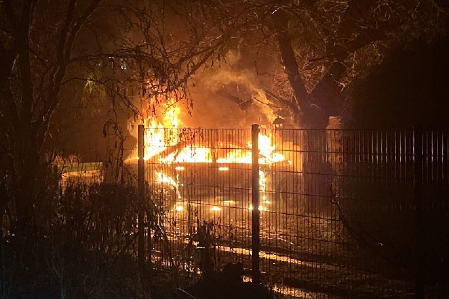 Beim Eintreffen der Beamten stand ein Audi, der sich in einem Garten befand, bereits in Vollbrand.