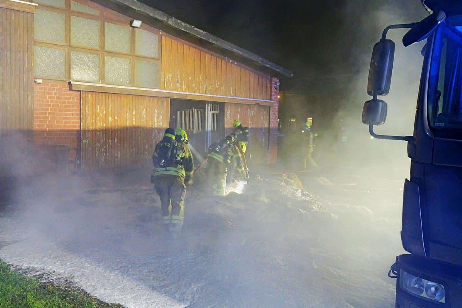 Die Tiere waren durch Rauch bedroht, konnten aber nach der Brandbekämpfung unverletzt aus den Stallungen geführt werden.
