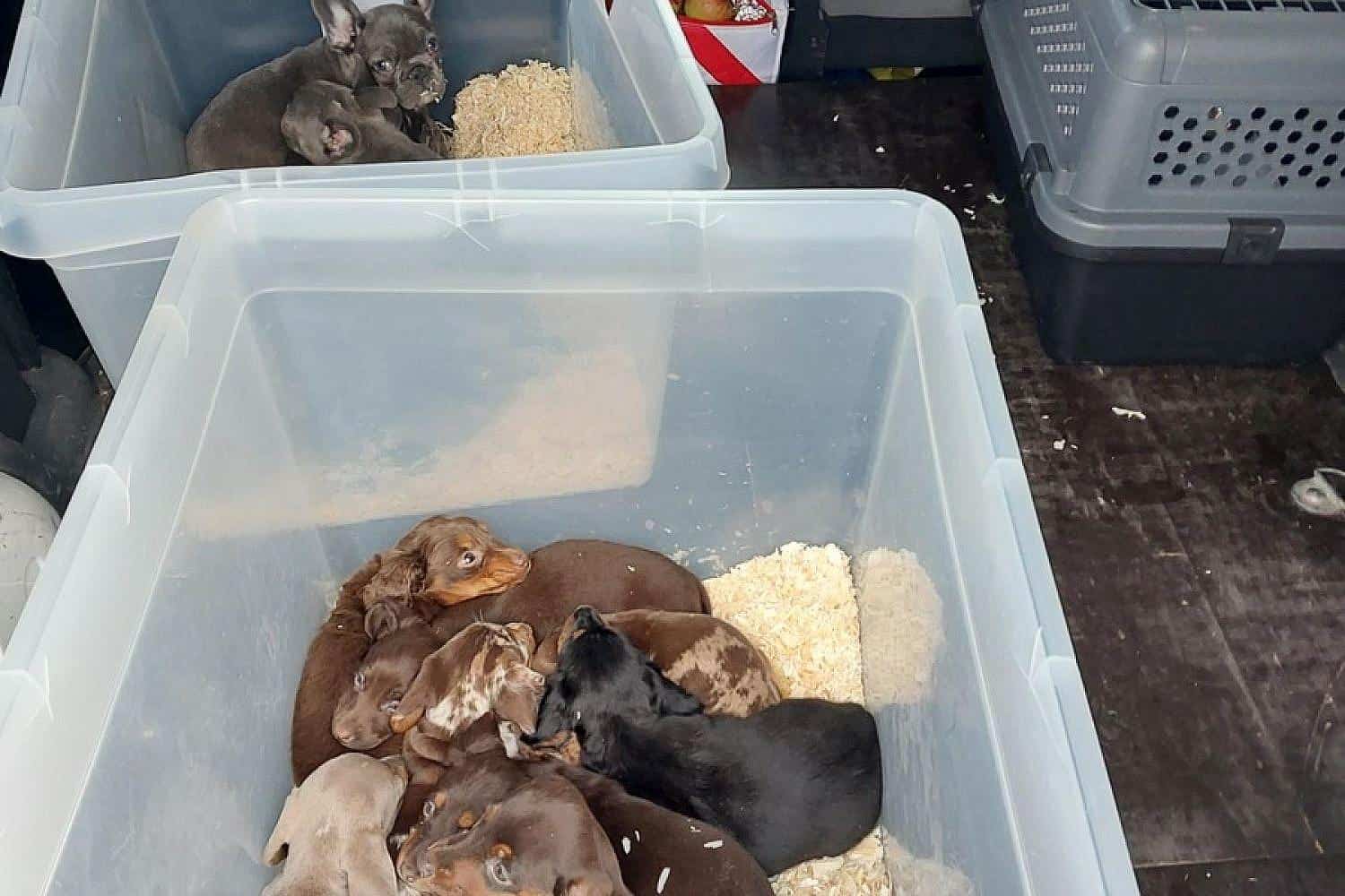 Im Laderaum fanden sie zwei ungesicherte Plastikboxen vor, in denen acht Dackel- und fünf Bulldoggenwelpen lagen.