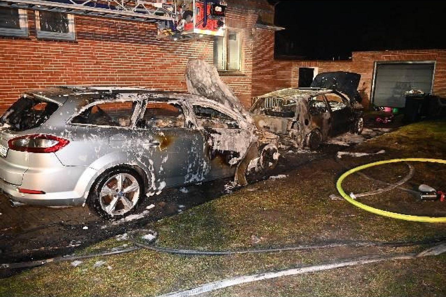 In Stade wurden in der Nacht zwei Autos bei einem Brand vollständig zerstört, während die Feuerwehr den Brand schnell unter Kontrolle brachte, ohne dass jemand verletzt wurde; die Polizei sucht nun Zeugen und wird die Brandursache klären.