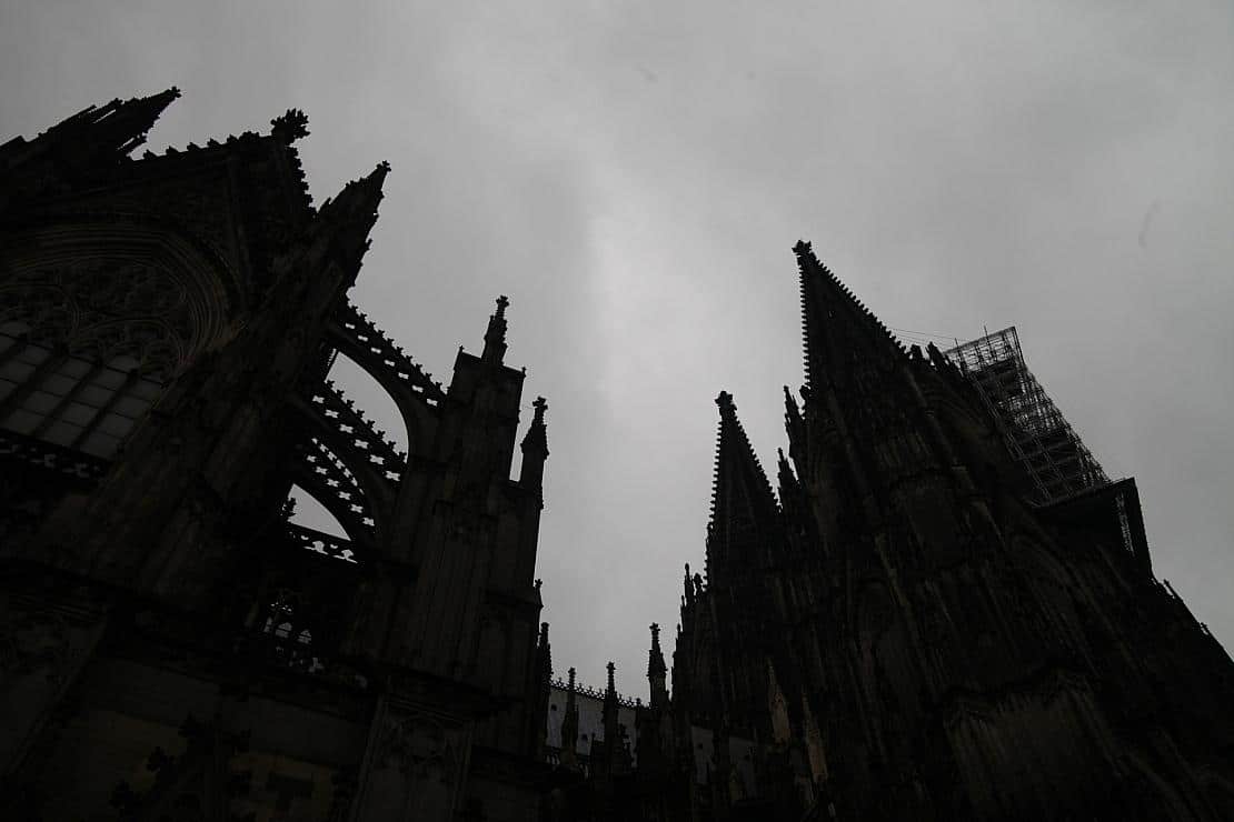 Bildhinweis: Kölner Dom dunkel unter grauen Wolken (Archiv)