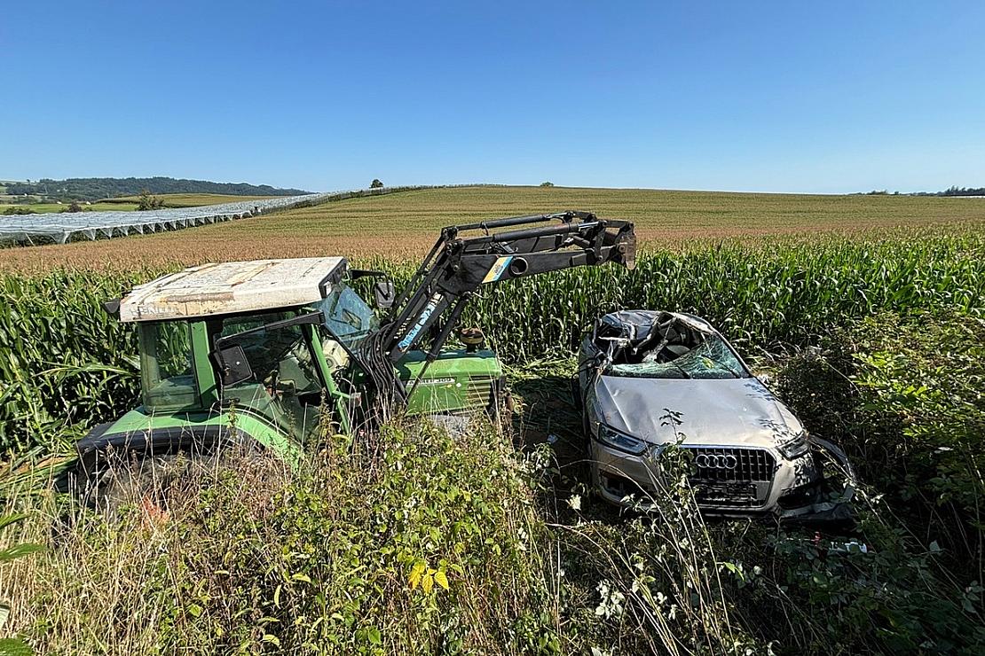 Die eingeklemmte Beifahrerin konnte erst nach Rettungsmaßnahmen unter Mithilfe von Landwirten befreit werden, die die Karosserie des silbernen Audis mit einem Frontlader streckten. Trotz schneller Hilfe starb die Frau später im Krankenhaus.