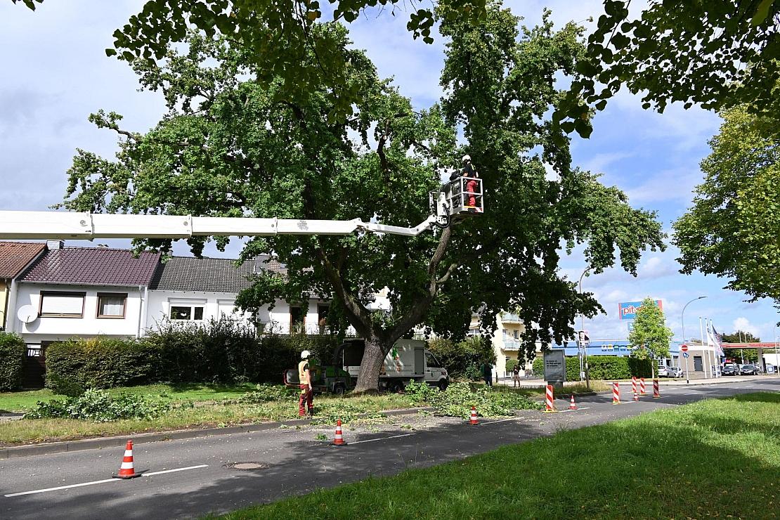 Laut Stadtbaummanager Stephan Dally muss nun beobachtet werden, ob die Rettungsmaßnahmen ausreichen und wie sich der Riss entwickelt. Der Baum steht an der Ecke Rauentalshöhe und Schlachthofstraße unmittelbar neben der Fahrbahn.